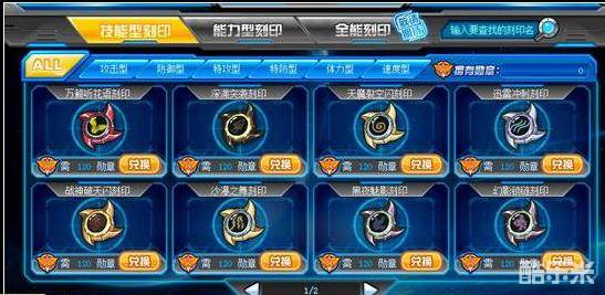 用参加活动的获得的勋章可兑换下面各种刻印。