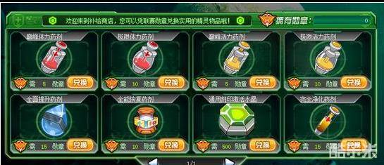 补给商店一样,用勋章来兑换各种药剂和物品。
