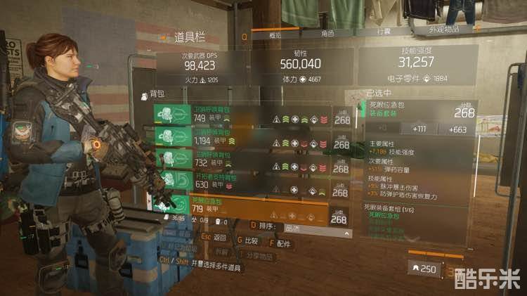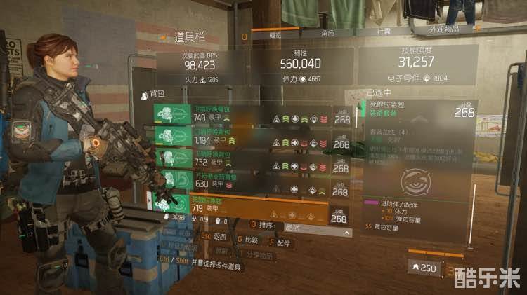 卡弹药用警用背包一件或者套装四件带孤星套装配件用带10%弹药,四件套装就是50%背心和背包洗52%弹药容量,一次补给2000多发子弹,卡医疗包用两件阿尔法和医疗背包就是9个医疗包。