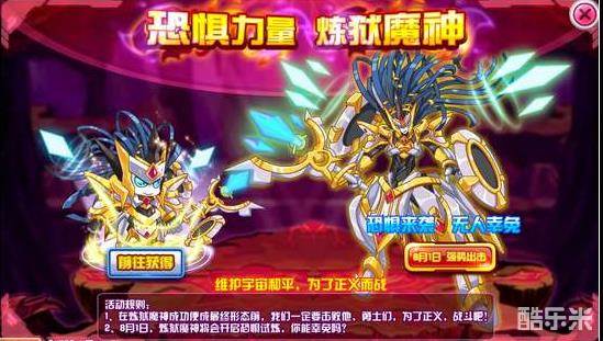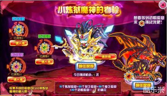 进入炼狱小神获得活动。每天8次挑战机会,收集道具即可兑换炼狱小神精灵。
