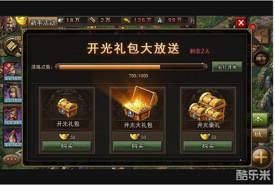 活动内容:开光礼包共有3种,分别为:开光礼包、开光大礼、开光豪礼。购买所需的金币数不同,花费越多,打开获得的奖励越多。