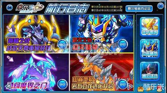 登录赛尔号,点击左上角的航行日志,选择右侧第二个方形图标,再点击图片右下侧的GO按钮!