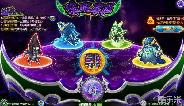 集齐2个以上的热情之心就可去召唤守护兽啦!超NO用户每天7次唤醒机会,普NO用户每天5次唤醒机会。点击召唤守护兽。