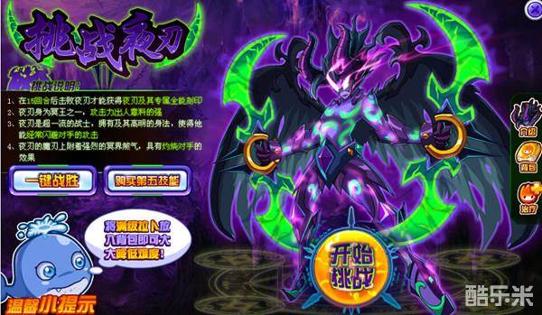 大家可以先来看看挑战夜刃是什么内容。点击挑战夜刃按钮