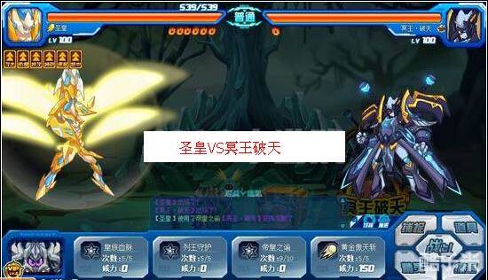 冥王破天的特性:天生攻击+2,受到攻击后一回合先手,攻击很高,且容易致命一击。必须15回合内击败。首先属性技能消强,最好是圣皇,顺带大招能弱化一下。