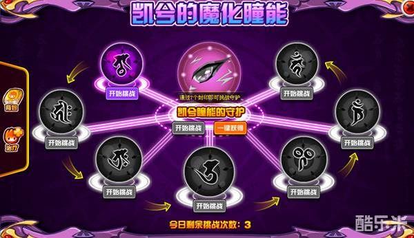 凯兮瞳能有7个BOSS需要大家战胜,每天有3次挑战机会,最少需要3天才可完成挑战。