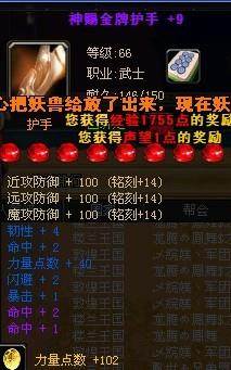 护手: 命中 理由同项链 我见过一个命中+1的护手 应该还能洗的更多 2个102力量石头 和一个多彩 虽远必诛回复怒气的 武士杀人就靠这个技能