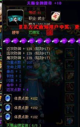 衣服: 韧性 理由同头盔 3个102体质石头 不建议打多彩 要替换两个102才换来占八方多群2个 2个102体质石头 武士是增加1000+的血