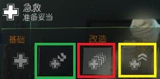 红色 用药过量,最常用实用的技能,治疗效果增加满血会有过量效果。黄色强化针,治疗效果差点但可以增加防御,(有黄金衣服精力充沛天赋可以选择这个天赋)绿色 有人爬地打在地上会复活起来,治疗效果一般,这天赋很少用到。