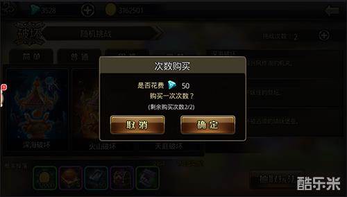 你也可以购买更多的挑战次数,这需要花费一定数量的钻石,并且同一天购买的次数越多,也就意味着购买次数的花费越贵,这同时也说明了明天的免费挑战次数是值得珍惜的。合理利用好每天的免费次数,日积月累,可以收获不少的奖励!