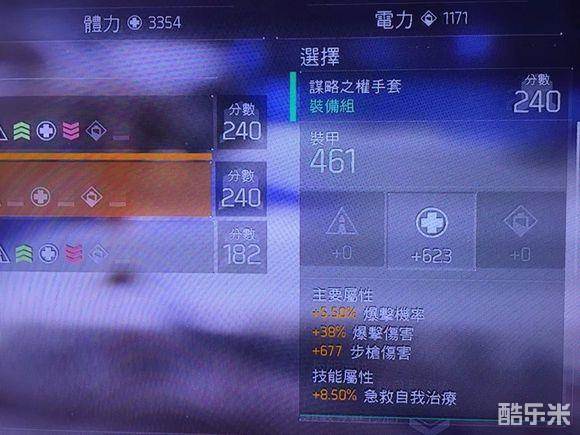 这个手套下面的技能属性就加了8.5%的急救,这种技能属性之所以好用是因为它是按照百分比算的,加成的顺序在技能强度的后面,简单一点来说,你的技能强度越高,这个百分比的收益也会越高