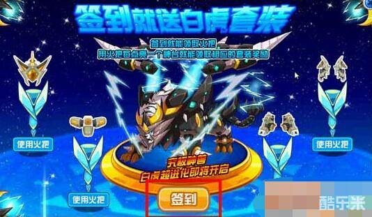 再次点击到签到界面,大家有可以使用火把领取白虎套装的部件咯!