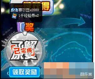 完成了解原委任务可以领取到:赛尔豆*2000、1k经验券*2