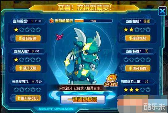 完成守护宝物任务即可领取:闪光铁牙、赛尔豆*2000、1万经验券*2。闪光铁牙精灵到手咯!小赛尔们,你们入手这只精灵了吗?