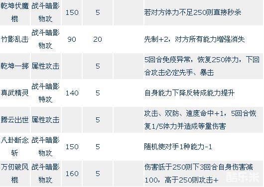 赛尔号乾坤战神昆仑技能表: