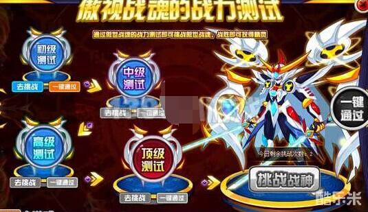 活动玩法长,大家要先通过初级、中级、高级、顶级的测试,才可开启傲世战魂真身挑战,打败傲世战魂真身可获得该精灵。