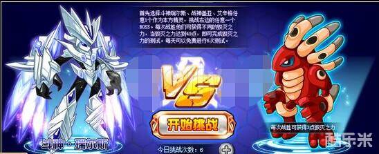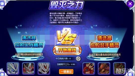 毁灭之力的挑战是,每天6次挑战机会,从3只我方精灵和3只敌方精灵中各选一只出站,胜利后可获得毁灭之力,集齐40点毁灭之力就算过关。