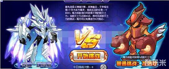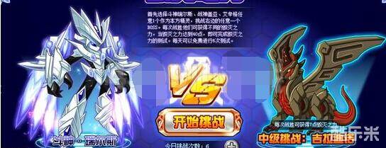 我方精灵可以从斗神瑞尔斯、艾辛格和战神盖亚里面选择1个,那我们就全程选择斗神瑞尔斯吧!而敌方3只精灵是有不同难度等级的,挑战难度越高获得的毁灭之力越多。对战最简单的精灵是获得3点毁灭之力。