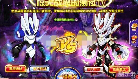 每天2次挑战机会,用战神盖亚打败瑞尔斯,用瑞尔斯打败战神盖亚就可完成该关试炼。