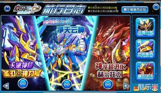 登录赛尔号,点击左上角的航行日志,选择右侧第二个方块,点击【神宠超进化】的GO按钮。