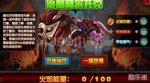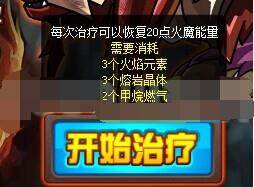 如果不想花钱,那就来参加活动吧!收集3个火焰元素、2个熔岩晶体、2个甲烷燃气就可治疗20点火魔能量,连续治愈5次就可获得精灵赫尔托克。