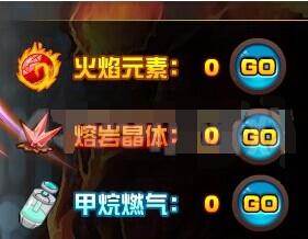 火焰元素、熔岩晶体、甲烷燃气要怎么得呢?点击相应的GO按钮,就可传送到场景中获得。