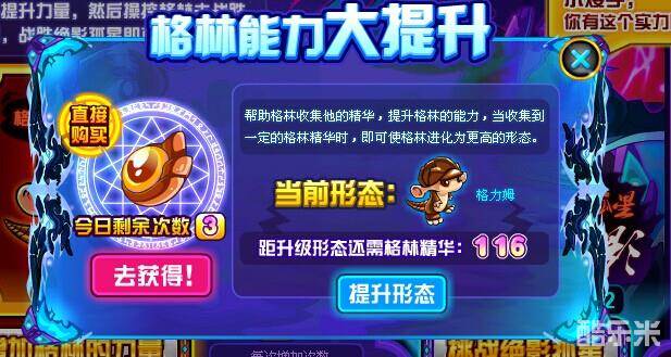 收集满60个的话,就可以点击【提升形态】按钮啦!格林就会提示能力!
