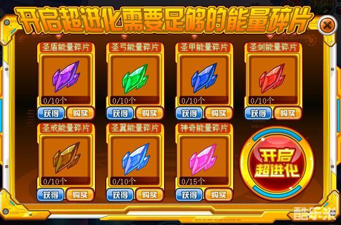 还是让我们进入超进化活动吧!分别收集创世六神兵的碎片各10个就可开启超进化!