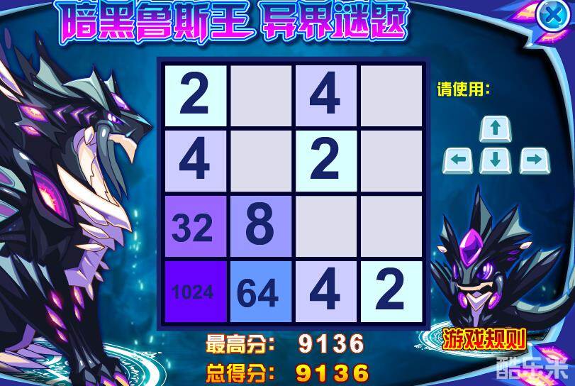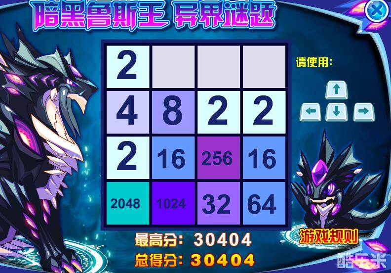 赛尔号暗黑鲁斯王2048小游戏高分攻略