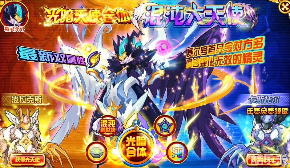 混沌大天使,顾名思义就是光天使与暗天使合体。合体后便能得到混沌大天使。
