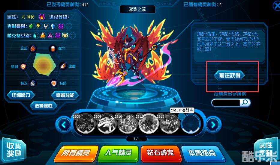 打开图鉴,找到邪影之尊,点击旁边的“前往获得”。