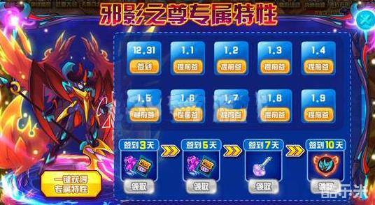 邪影之尊的专属特性获得方法是通过签到。