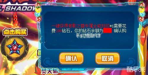 邪影之尊的专属全能刻印是通过花钻石获得的,需要198钻石。