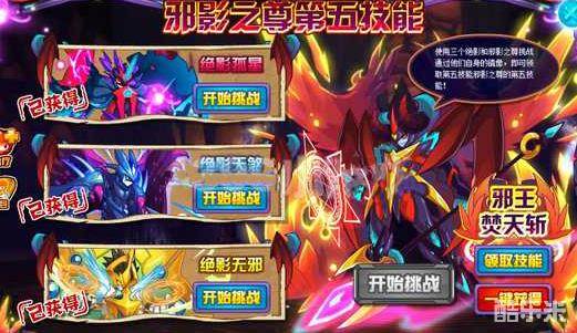 邪影之尊的第五技能是需要挑战获得。