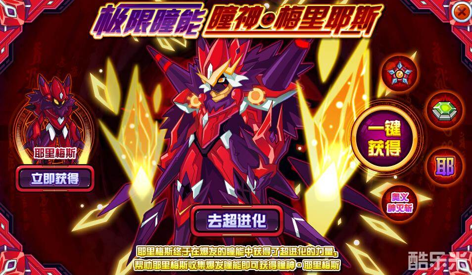 当你有耶里梅斯后,就来参加超进化活动吧!点击“去超进化”。