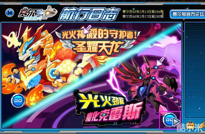 登录赛尔号,点击左上角的航行日志,选择右侧第一个方块,点击魔化克雷斯活动的GO按钮。