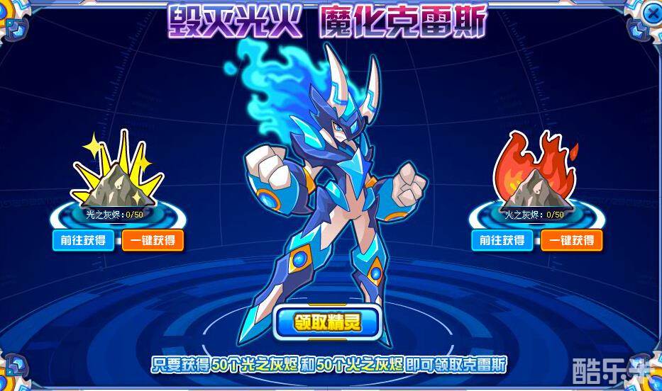 需要收集50个光之灰烬和50个火之灰烬来兑换!这里的挑战机会和魔化克雷斯是公用的,所以需要3天才能够获得克雷斯。