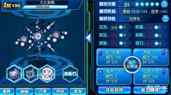 推荐打法3:精灵单挑!第二选择尤比希斯,携带技能“暗冥之光”+大招(这里可以带上个草石头-S)+PP药剂。开场首发“暗冥之光”,然后一直不变,直到强化满,接着放大招→幽冥之光→大招。如此轮番,K.O.