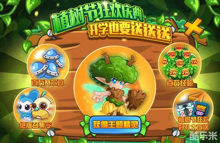 植树节狂欢 神奇百万经验树 每点亮一份经验奖励即可获得2个希望种子,十分钟点亮一次哦!赶紧给精灵吸收经验吧!经验当天不吸收的话,第二天会翻倍哦!!每天最多57W经验。