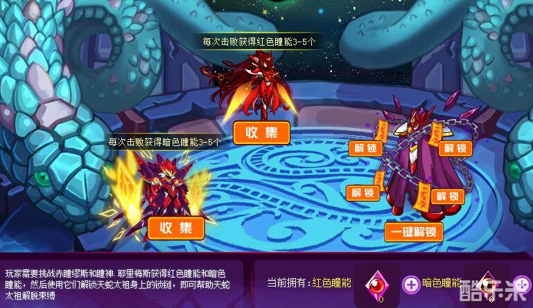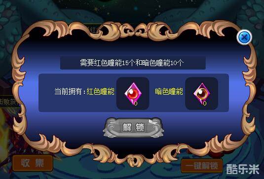 解锁右上角需要25个红色瞳能和30个暗色瞳能
