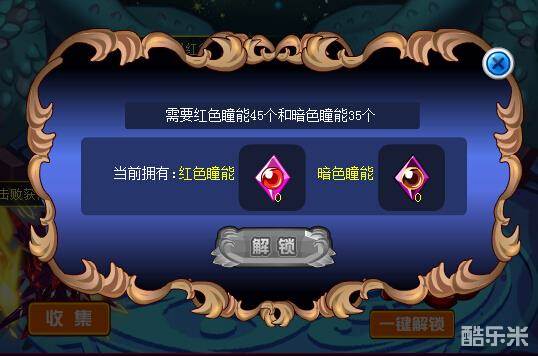 解锁右下角需要45个红色瞳能和35个暗色瞳能。