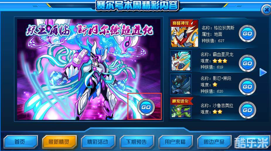 登录赛尔号,点击左上角的航行日志,选择最新精灵里面斯内普活动的GO按钮。