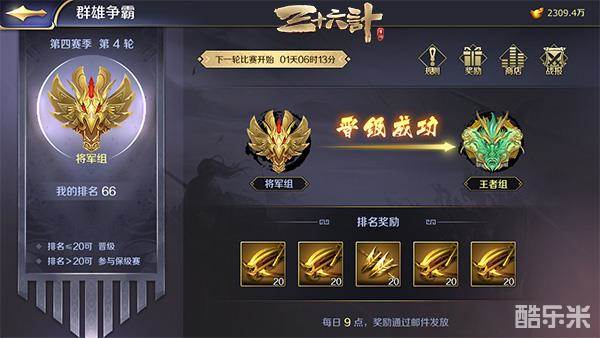 不过没有晋级的主公也不要气馁,重整旗鼓,在下一次新赛季开始时,继续努力!