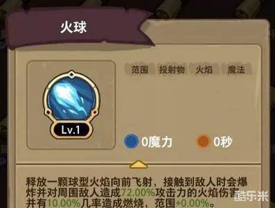首先我们用火球举例,这个技能右边有4个属性条,代表这个技能受到这4种属性的加成或者影响。