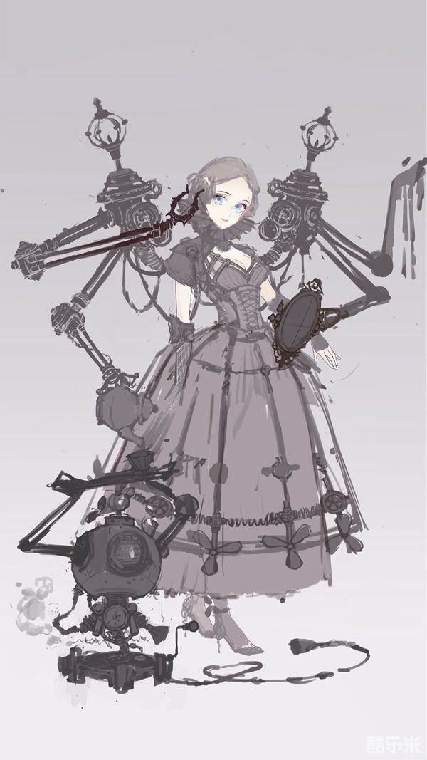 定好蒸汽朋克的主题之后,一般就会提出很多“着装场景”的概念来讨论,最后那些符合又大又酷炫,画师小姐姐们还喜欢画的就会胜出……