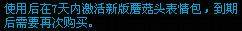 | 蘑菇头表情包(7天)*1 | 可交易 | |