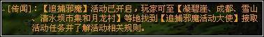 2.玩家可在成都城【390,133】处及其他主要城镇找到NPC剿魔义士【追捕邪魔活动大使】,并与其对话承接任务【追捕邪魔】