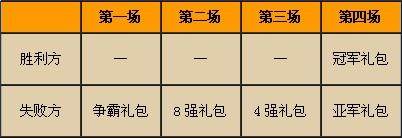 2.胜负帮会均会获得帮会荣誉,比赛结束后参战帮会成员将根据排名获得礼包(获得之礼包请参考下表)。