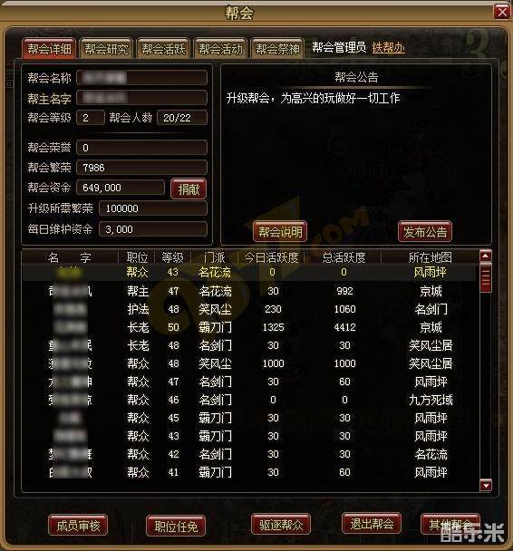 3.玩家所有帮会信息(总活跃度、帮会职位)将会被清空。