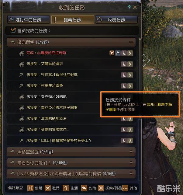 但是黑色沙漠里有非常多的任务,如果要完成刚开始接触游戏时遇到的所有任务,可能会有点吃力,因此20级以上的角色,可以只接想要的任务类型。